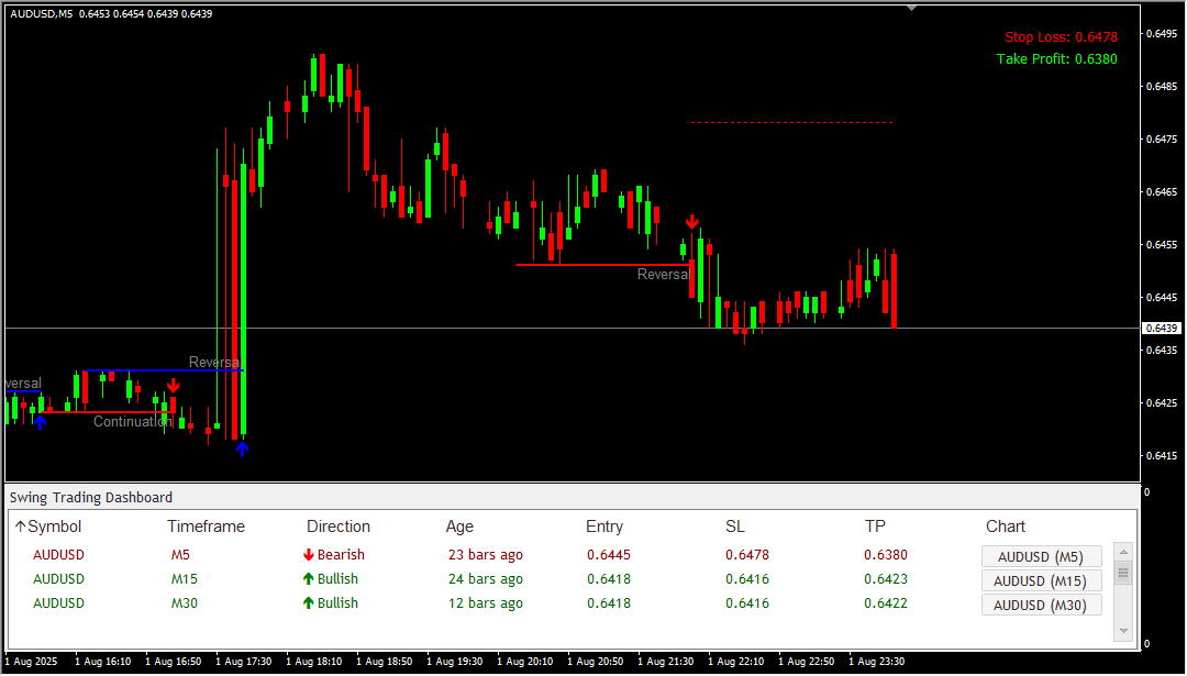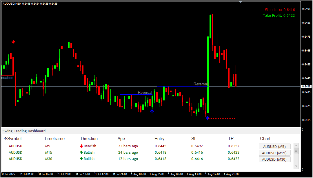 Detects key swing trading signals including bullish and bearish continuations and reversals that highlight potential trend shifts or momentum bursts. - All-in-One Swing Trading Dashboard